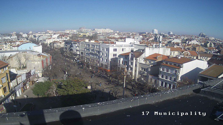 Уеб камера от Бургас - център, 'главна' улица, от общината, площад 'Свобода' времето на живо