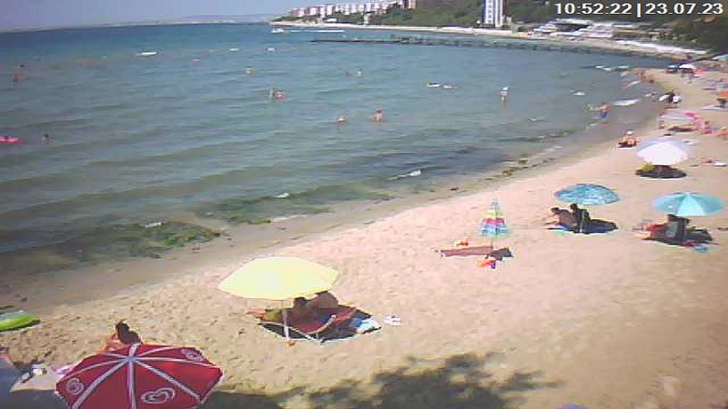 Уеб камери и времето на живо от морски курорти, комплекси, хотели, местности, къмпинги, плаж, плувен басейн, заливи, брегове, Черно море. По Българското черноморско крайбрежие, от нос Сиврибурун на границата с Румъния и до устието на Резовска река на границата с Турция, се редуват просторни плажни ивици и живописни скални брегове, които са едни от главните туристически атракции. Южното крайбрежие има широки и дълги плажове за разлика от северното, което има скалист релеф. Златни пясъци, Албена, Арапя, Бяла, Китен, Царево, Лозенец, Св. Константин и Елена, Балчик, Каварна, Шкорпиловци, Слънчев Бряг, Равда, Поморие, Елените, Свети Влас, Обзор, Несебър, Приморско, Созопол, Бургас, Варна.